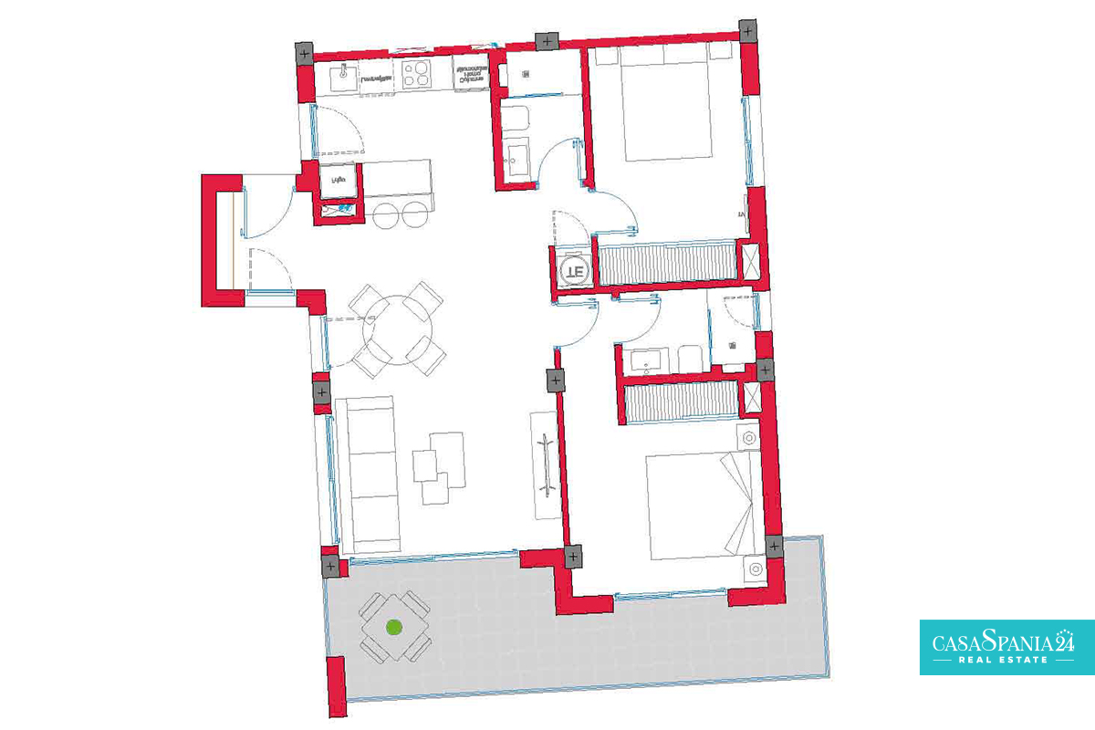 This elegant apartment, with a total area of 95.47 m² (87.57 m² usable), offers a generous and well-compartmented space. It has 2 bright bedrooms, 2 modern bathrooms, a spacious living room with dining area and a 7.9 m² terrace ideal for relaxation and outdoor moments. In addition, the home benefits from its own parking space.