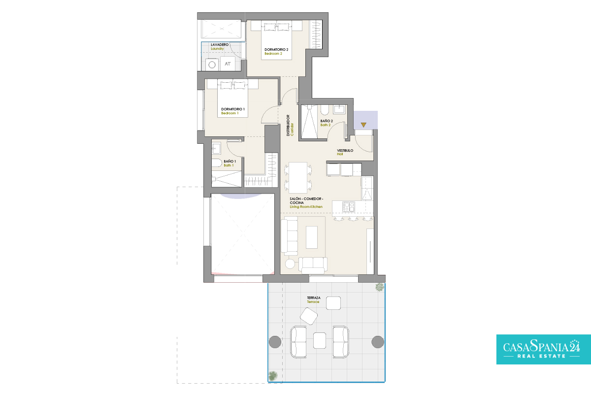 Discover the comfort of an elegant apartment with 2 bedrooms, 2 bathrooms, living room with integrated kitchen and a spectacular 31 m² terrace, ideal for your moments of relaxation. The home has a parking space and a storage room in the basement. The garage will be pre-installed for charging electric vehicles, in accordance with current regulations. Access to the complex has an automatic gate with remote control.