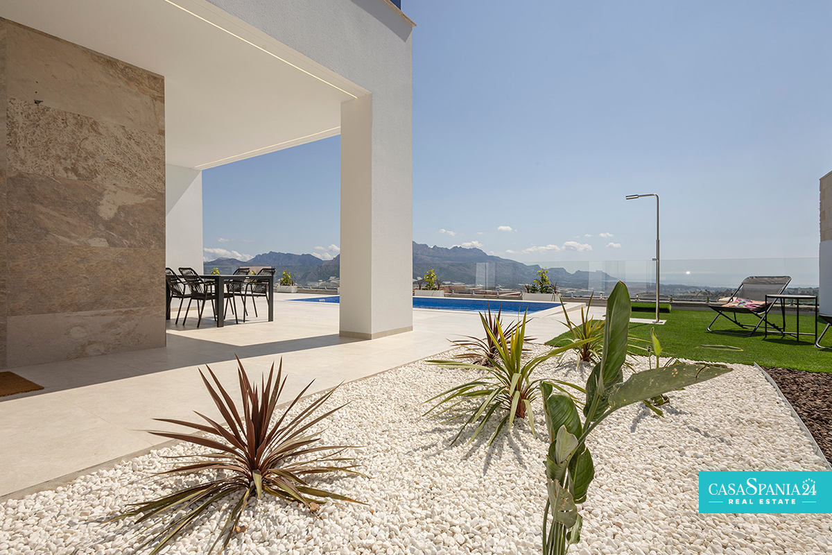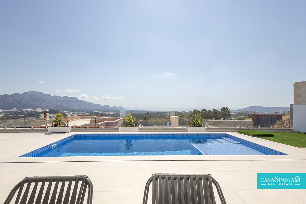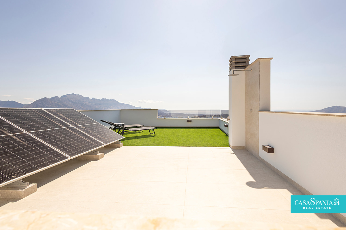 The 46 m² roof terrace (solarium) is optional and there is the possibility of a basement. The villa is 15 minutes from the beaches of Benidorm, Altea and 45 minutes from Alicante airport.