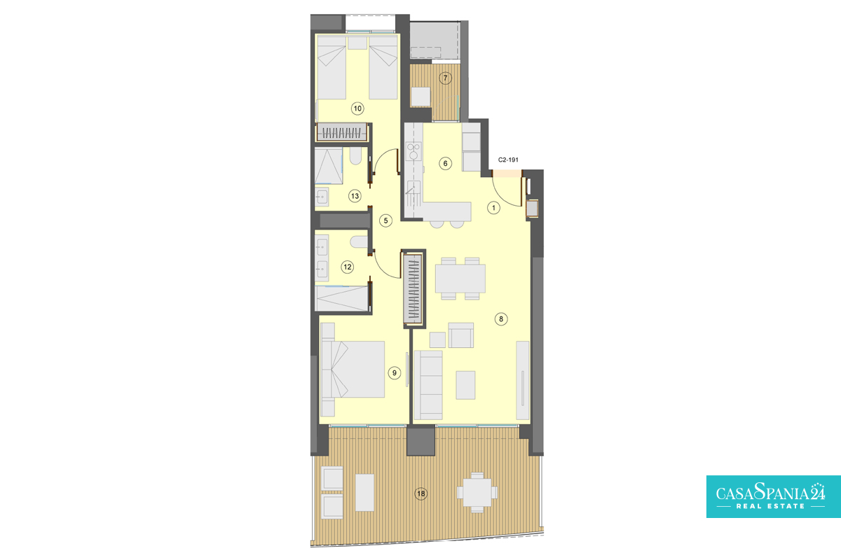 The residential complex consists of a 30-story tower and a 40-story tower, both facing south. The types of housing are very varied and you can choose between Excellence apartments with 1, 2 and 3 bedrooms with 1 or 2 bathrooms and Premium apartments with 2, 3 and 4 bedrooms with 2 or 3 bathrooms. The design aims at maximum comfort and will allow you to enjoy the Mediterranean Sea. The terraces (covered and uncovered) will have glass railings that ensure continuity of the views and allow you to enjoy them from the inside.