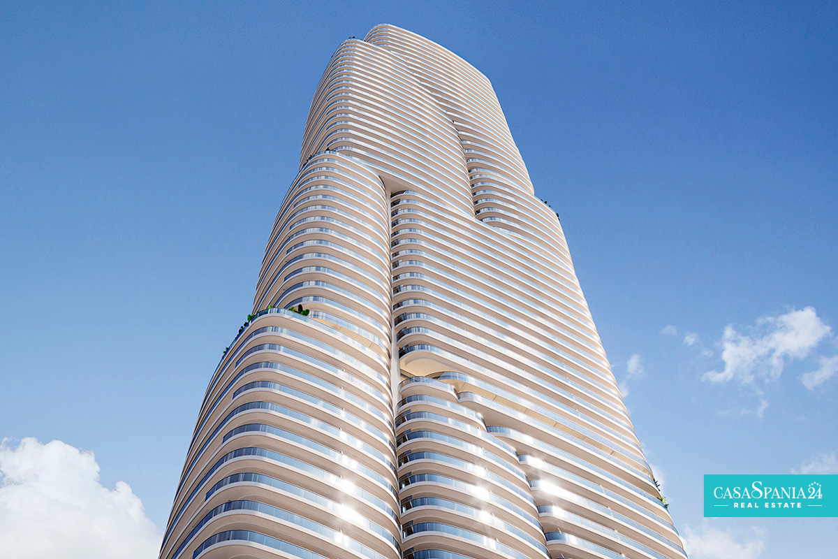 With a height of 230.50 meters and 64 floors, the TM Tower stands out as the tallest residential tower in Europe and a new icon of the Benidorm skyline. Its silhouette progressively tapers towards the top, grouping smaller volumes as it rises to create a sophisticated and light architectural form. Inspired by the organic shapes of marine nature, the curved composition of its volumes evokes corals that emerge and intertwine fluidly, resulting in a slender, elegant and dynamic structure. This unique design not only gives the building an unmistakable personality, but also ensures that each home enjoys privileged views and a direct visual connection to the sea.