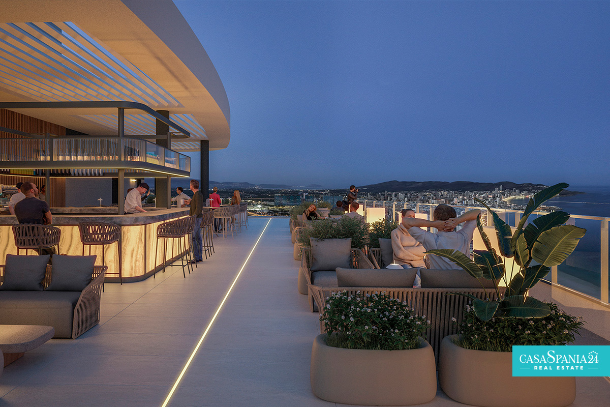 Common areas: coworking area, cinema & tv room, residents lounge, gym - weight room, fitness & family, gym - cardio room, gym - yoga garden, kids club, spa & wellness, spa lobby, jacuzzi lounge, heated indoor pool, sensation showers, Finnish sauna, steam baths, ice fountain, massage lounge, heated sun loungers, skybar, observatory, pool area, heated pool, children's pool, jacuzzi, children's playground, sports area.