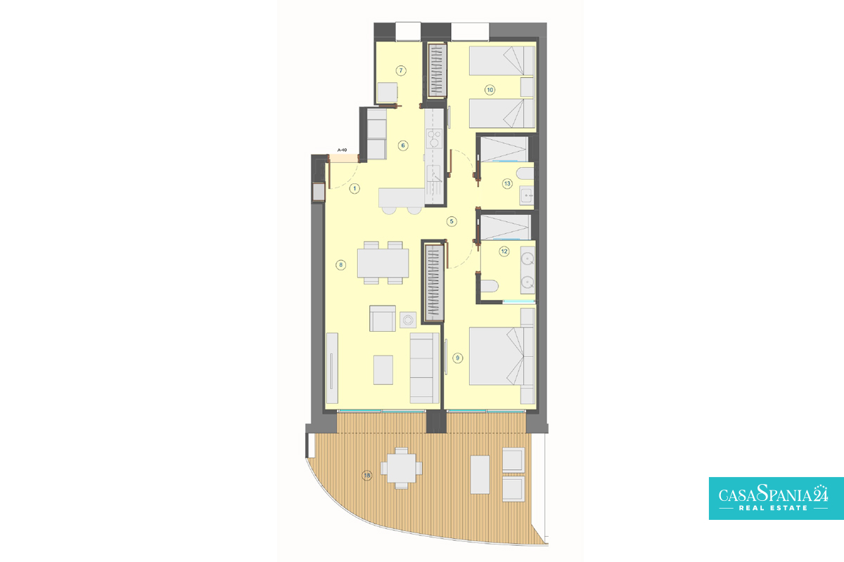 Exclusive apartment with 2 bedrooms, 2 bathrooms, living room with open kitchen, parking and a spacious 22 m² terrace.