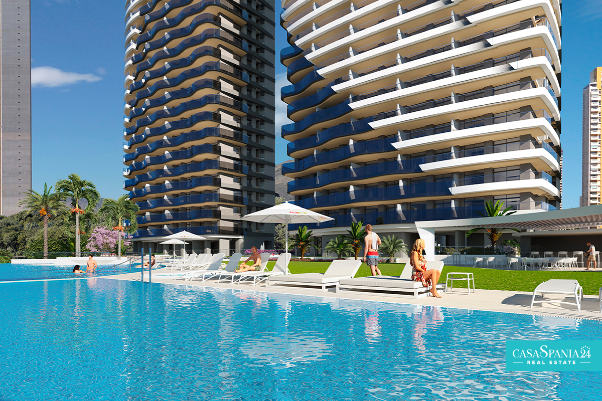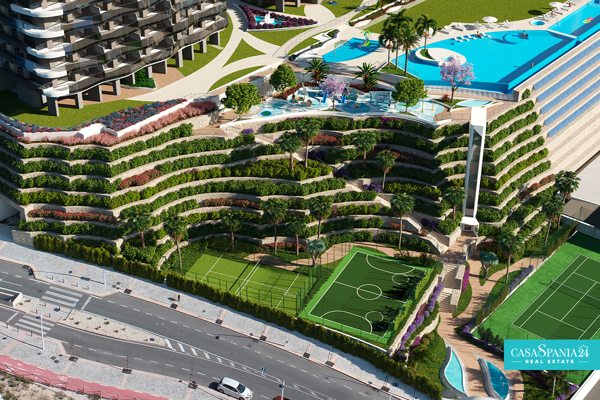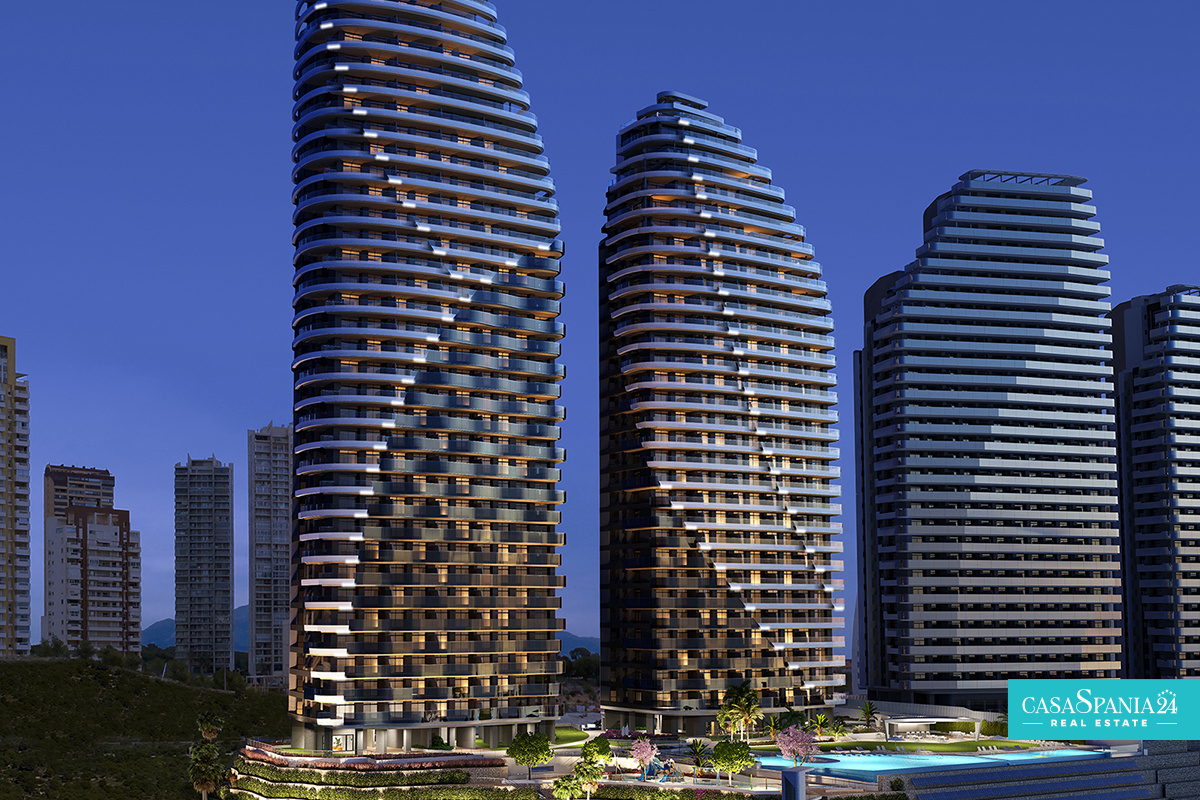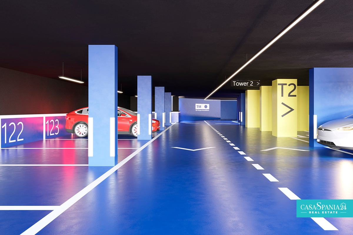 The residential complex consists of a 30-story tower and a 40-story tower, both facing south. The types of housing are very varied and you can choose between Excellence apartments with 1, 2 and 3 bedrooms with 1 or 2 bathrooms and Premium apartments with 2, 3 and 4 bedrooms with 2 or 3 bathrooms. The design aims at maximum comfort and will allow you to enjoy the Mediterranean Sea. The terraces (covered and uncovered) will have glass railings that ensure continuity of the views and allow you to enjoy them from the inside.