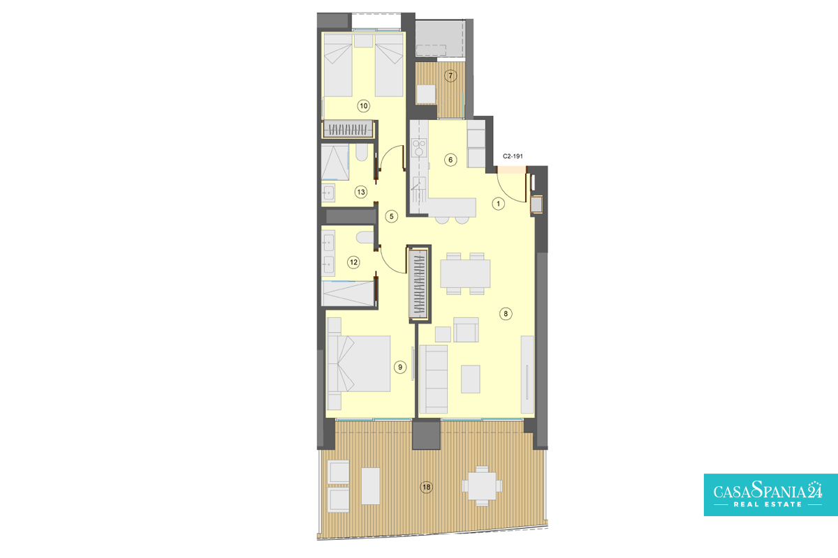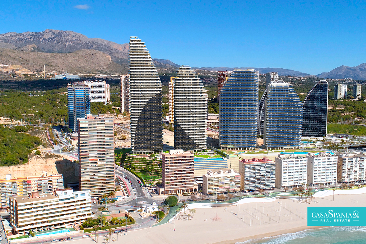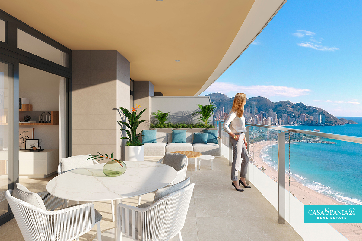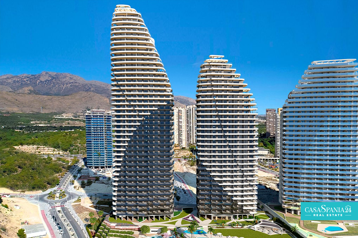 The residential complex consists of a 30-story tower and a 40-story tower, both facing south. The types of housing are very varied and you can choose between Excellence apartments with 1, 2 and 3 bedrooms with 1 or 2 bathrooms and Premium apartments with 2, 3 and 4 bedrooms with 2 or 3 bathrooms. The design aims at maximum comfort and will allow you to enjoy the Mediterranean Sea. The terraces (covered and uncovered) will have glass railings that ensure continuity of the views and allow you to enjoy them from the inside.