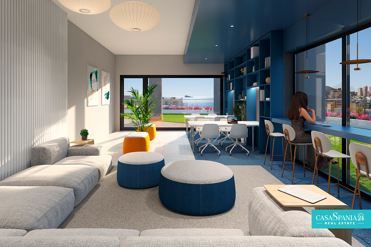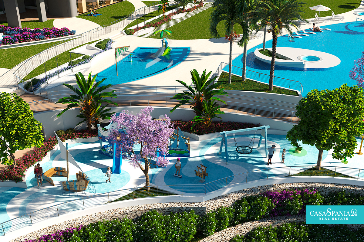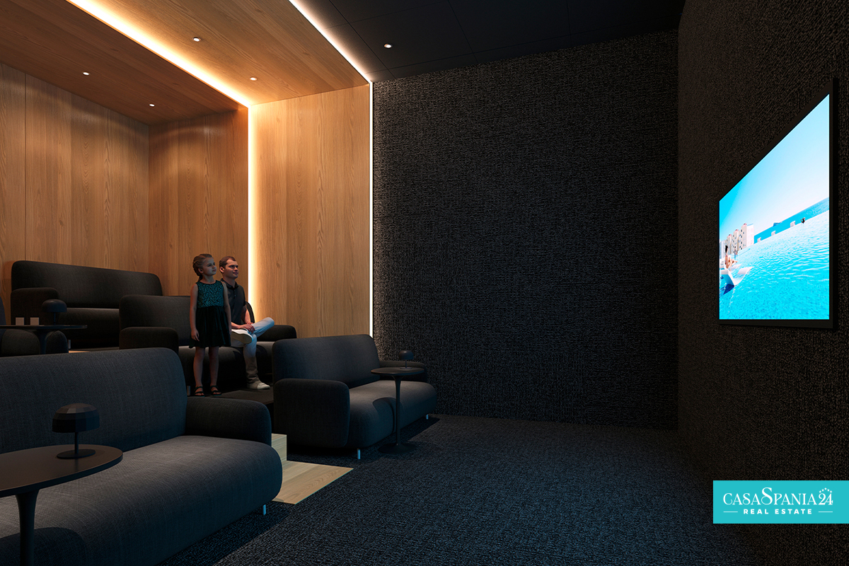 The common areas of the complex are the perfect highlight for this special residential complex. Swimming pools, one of them heated, jacuzzis, relaxation areas, a coworking space, a panoramic gym, a large sports area with paddle tennis court, tennis court and multisport court, or even a cinema room.