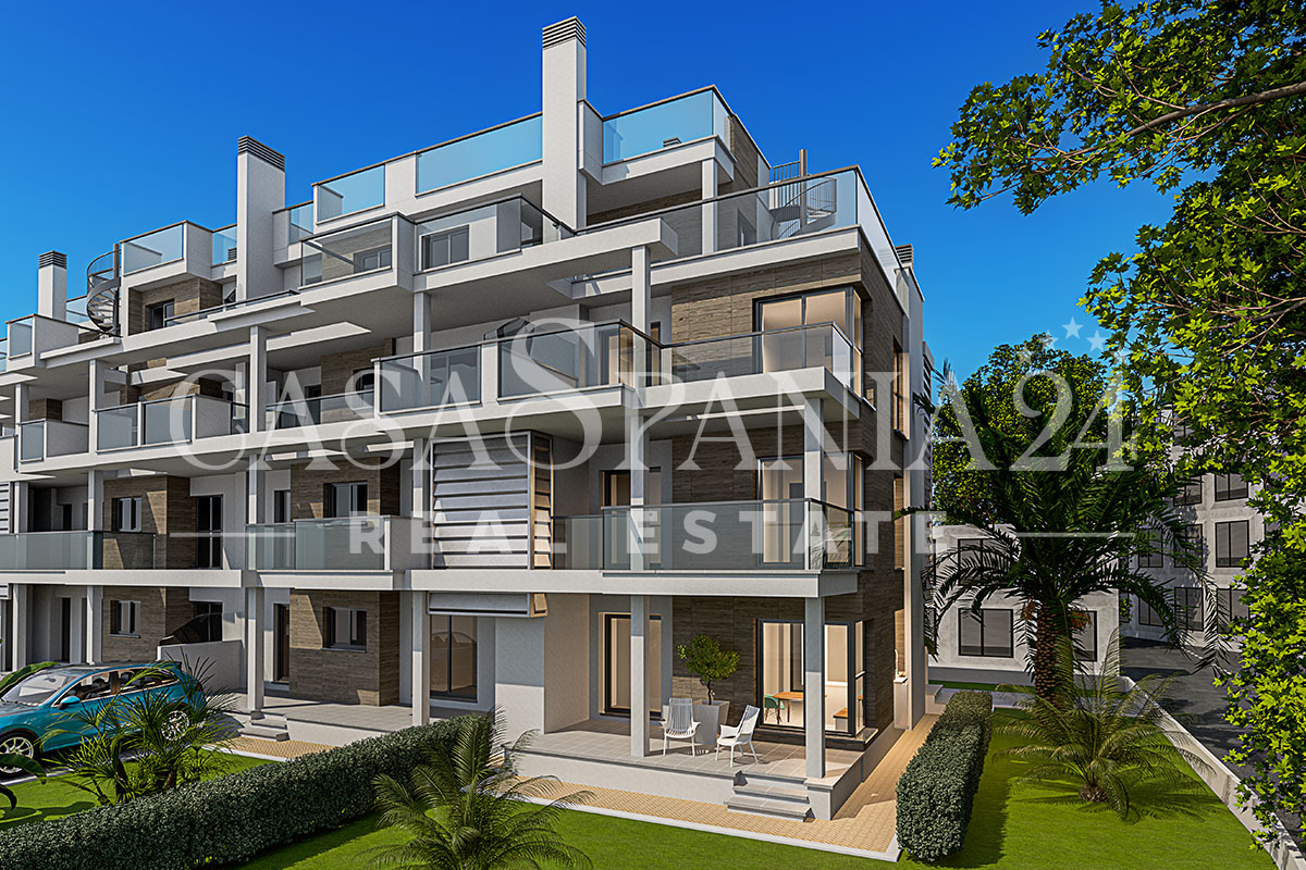 The apartment is part of a residential complex in Denia, located just 2 km from the city center and 100 meters from one of the most beautiful beaches in the Mediterranean. The complex includes a private gated community with well-maintained gardens and a swimming pool for both adults and children.